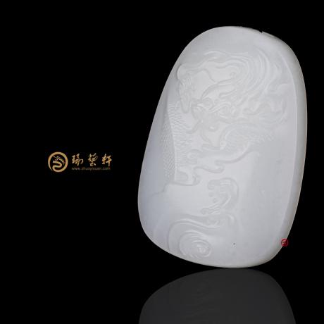 羊脂白,油润光洁,无瑕疵。作者浮雕祥龙,龙乃华夏之神兽,春分登天,秋分潜渊,呼风唤雨,无所不能 。玉乃国之重器,可奉神明,祭先祖,礼天地。旭日东升,召唤沉睡之龙的灵魂,从海底呼之欲出,姿容俊美,威武阳刚,翻滚浪花犹如千军万马,奔腾而来。线条圆润,富于张力,充满了动感,将龙升腾之势描摹的形神尽致。