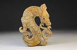 春秋战国时期,政治上诸侯争霸,学术上百家争鸣,文化艺术上百花齐放,玉雕艺术光辉灿烂。东周王室和各路诸侯,为了各自的利益,都把玉当作自己(君子)的化身。他们佩挂玉饰,以标榜自己是有“德”的仁人君子。“君子无故,玉不去身。”每一位士大夫,从头到脚,都有一系列的玉佩饰,尤其腰下的玉佩系列更加复杂化,所以当时佩玉特别发达,这也说明当时的玉的帝王政治学在当时已经铺天盖地了。能体现时代精神的是大量龙、凤、虎形玉佩,造型呈富有动态美的S形,具有浓厚的中国玉龙文化和民族特色。饰纹出现了隐起的谷纹,附以镂空技法,地子上施以单阴线勾连纹或双勾阴线叶纹,显得饱和而又和谐。人首蛇身玉饰、鹦鹉首拱形玉饰,反映了春秋诸侯国琢玉水平和佩玉情形。