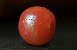 包浆上,现在已发现真珠子也有干涩的情况,但决不是新仿珠子或新工珠子那种明显的抛光表面,老珠包浆始终油润,自然。目前,老料做旧的一个重要方法就是采用磨砂工艺,这样更容易上包浆,后期也会变得更加红润有光泽,就像老珠子一样。