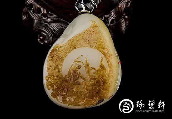 和田玉点皮,顾名思义就是在雕件上做一点点皮,并且这点皮就像古人“点绛唇”一样,确实是点上去的。据闻,如今技艺高超的点皮“大师”所造之“皮”极为逼真,不仅可以蒙骗普通消费者,就连行内的“老鸟”也时常打眼,甚至在获奖作品中也可以发现点皮玉件的踪迹了。以一件品质不错的雕件“点皮价”5000元估算,一个“点皮高手”年入百万不成问题,多人参与、类似流水线运作的“点皮家族”获利更丰。