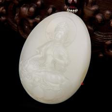 穆宇静 新疆和田玉洒金皮白玉籽玉玉牌 度母 59克 全部图片 移动端