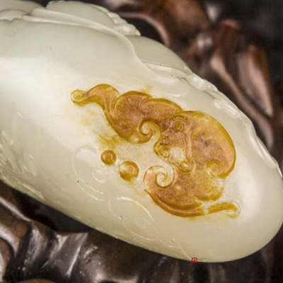 作品名称:新疆和田玉红皮白玉籽玉把件 佛引福来 54克